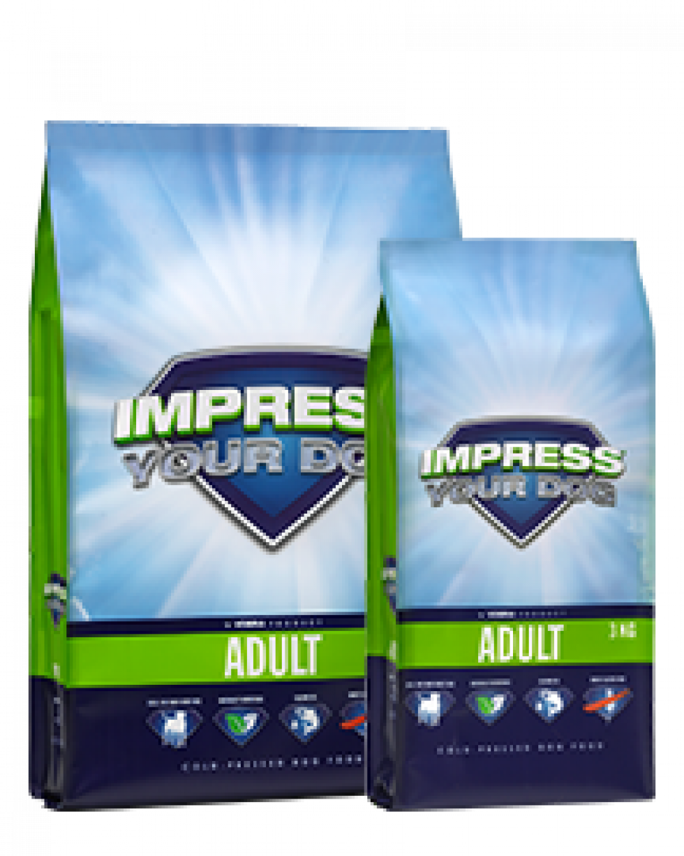 Impress Your Dog Adult is geperst en volledig diervoeder voor volwassen honden van alle rassen. De brokken dragen bij aan een sterke en gezonde basis voor jouw volwassen hond en zijn vrij van kunstmatige geur-, kleur- en smaakstoffen.