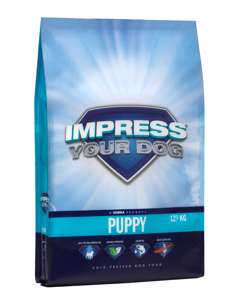 Impress Your Dog Puppy is een geperst en volledig diervoeder voor pups van alle rassen. De brokken bieden de optimale samenstelling voor een opgroeiende hond, zodat jouw pup een optimale start kan maken. De toegevoegde zalmolie draagt bij aan een gezonde huid en vacht en een goede weerstand. Bovendien ondersteunt het de hartfunctie en het leervermogen. De natuurlijke ingrediënten maken het een bijzonder licht verteerbare en voedzame brok.