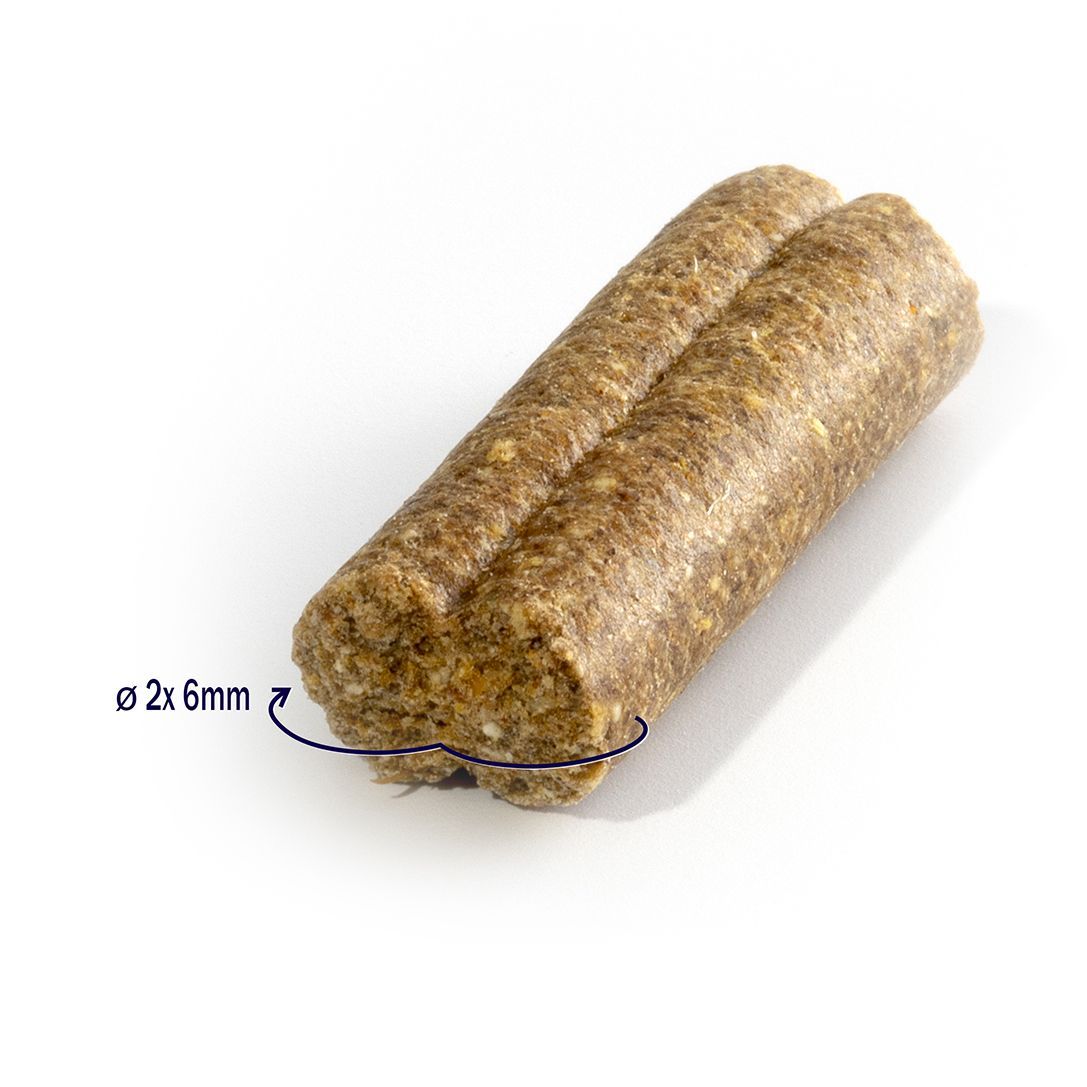 Deze geperste Impress Your Dog Senior brokken hebben de optimale samenstelling voor jouw oudere hond en is gemaakt van volledig natuurlijke grondstoffen. In de brokken is 68% van het eiwit van dierlijke oorsprong dat dient als de perfecte energiebron voor jouw hond. Het voer is rijk aan zalmolie wat zorgt voor een goede conditie van huid en vacht. Bovendien is het een tarweglutenvrij recept. Daarnaast zit er 20% mais en 13% rijst in de brokken verwerkt wat zorgt voor een goed verteerbare brok voor jouw hond.